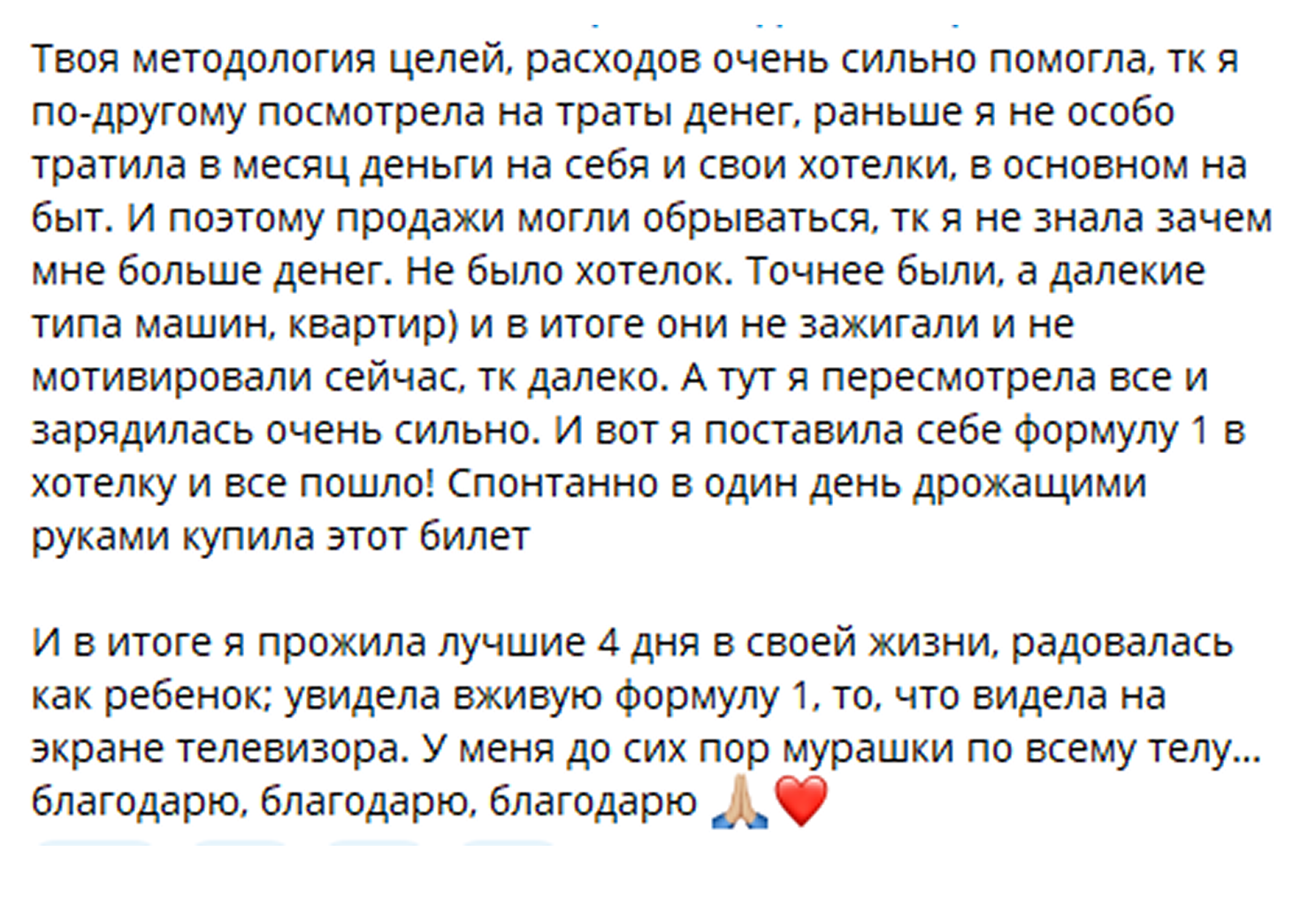 Создала сильное сообщество, в котором более 3000 людей меняют свою жизнь благодаря авторским методикам и смыслам.